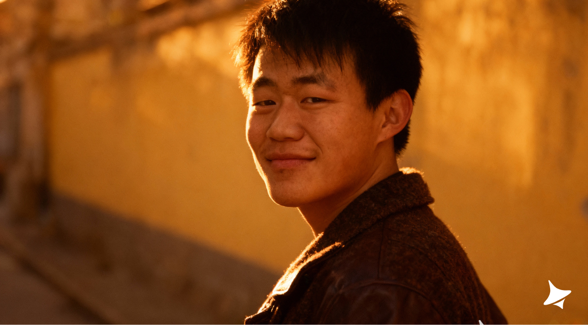男性提示词将上传的人像转换为经典35mm胶片摄影作品。构图:中近景,轻微侧脸,人物不在画面正中心。光线:逆光与斜侧光结合,金色夕阳说明,补充处保持细节。色调:复古橙偏黄,肤色自然。服装暖棕皮外套或粗呢外套,质感厚重。背景:城市老街或昏黄。背景:强颗粒感、轻微镜头光晕与色偏,模拟柯达Portra 400胶片风格。波兰:深沉、怀旧、电影感强烈。镜头参数:f/1.8,85mm定焦,低景深虚化背景。